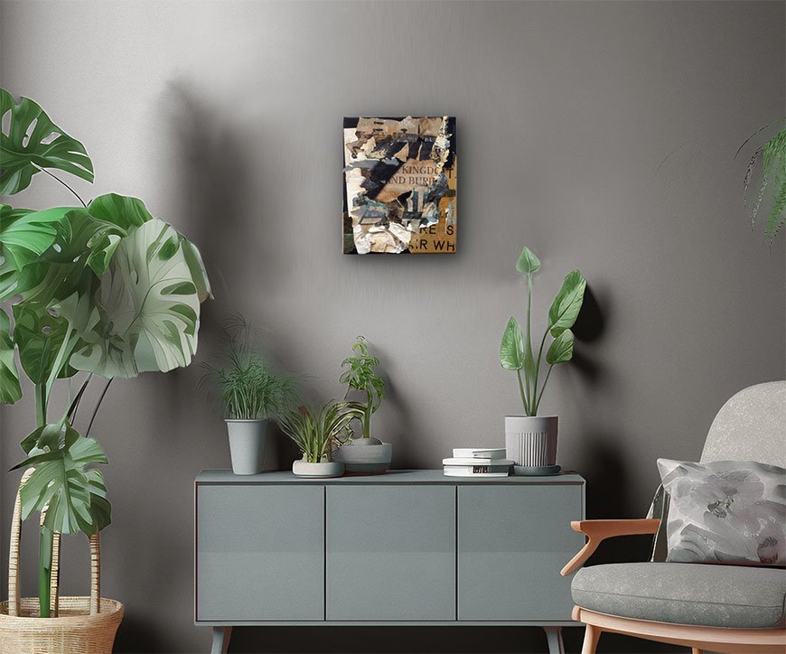 10″ x 12″ collage on canvas.